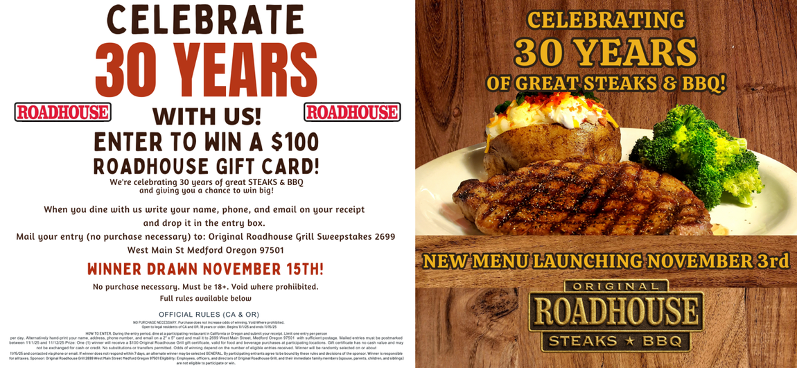 Original Roadhouse Grill takes great pride in being a Family-Owned and family friendly restaurant with an authentic Roadhouse style menu and a down home fun atmosphere. We're a casual American steakhouse serving hand cut steaks, fall off the bone barbecue ribs and freshly baked rolls. Our amazing staff and buckets of peanuts welcome the whole group in for a Fun, Casual and Tasty experience with our Roadhouse Family.